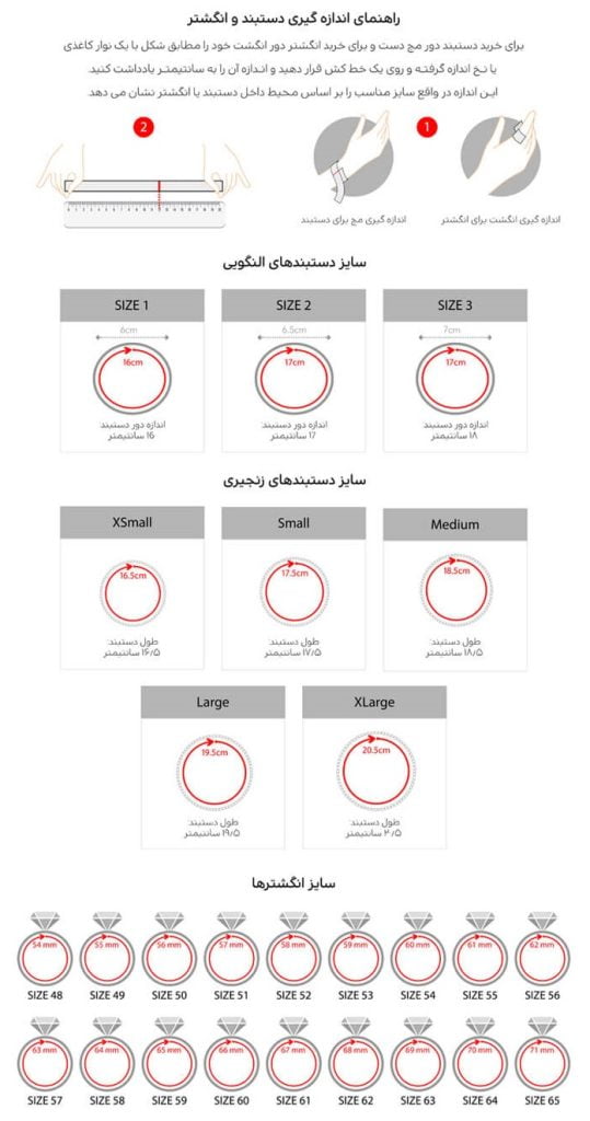 • راهنمای اندازه گیری دستبند و انگشتر